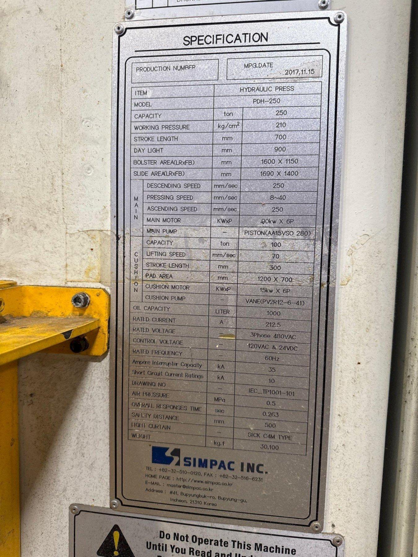 250 TONS SIMPAC HYDRAULIC PRESS
