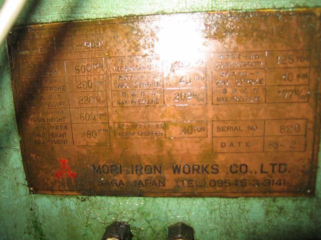| Total Press Force | 500 tons |